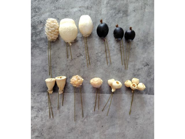 ヒムロスギは長さ3~4㎝にカットしたものを2~3本束ね、1/3カットのグリーンワイヤーでツイスティングします。これを15~20本用意しておきます。最後にTOPに飾る分を少し残しておきます。