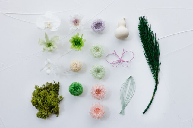 本編では、それぞれの花材のワイヤリング方法やポイントをご紹介させていただいていますので、ぜひ本編もご覧くださいませ。
