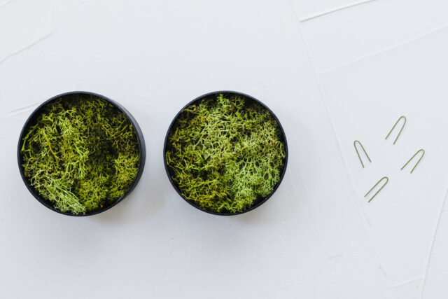 2,アイスランドモスをセックの上に薄めに敷いて、地巻ワイヤー緑#24で小さなUピンを作り、モスをセックに固定します。